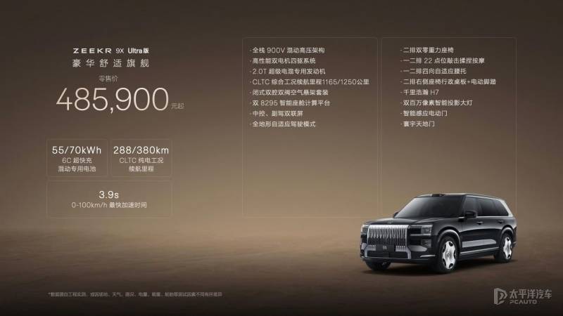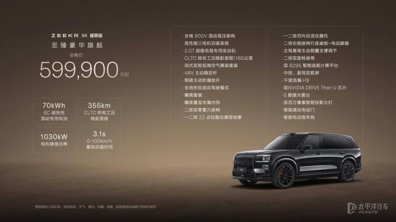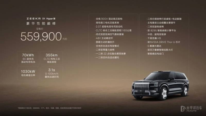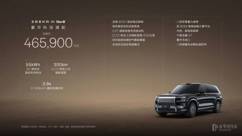 在过去的9月份,极氪9X和领克10 EM-P迎来上市。首先极氪9X推出4款车型的售价区间为46.59-59.99万元。作为极氪首款插混车型,新车定位大型SUV,搭载2.0T插混系统,提供双电机版和三电机版可选,电动机总功率最高1030千瓦,百公里加速3.1秒,CLTC纯电续航最高380km,并配备双腔闭式空气悬架、双阀CCD电磁减振系统和48V主动稳定杆。此外,新车还搭载千里浩瀚H9辅助驾驶方案,配备5颗激光雷达和双英伟达Thor芯片。据官方表示,Max版和Ultra版上市即交付,Hyper版计划11月下旬开启交付。