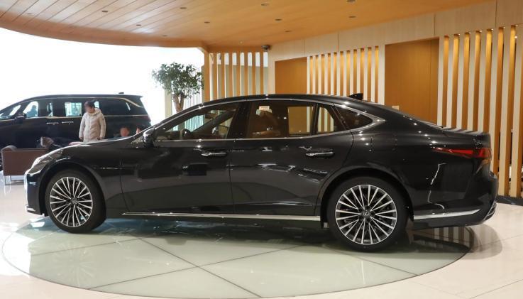 除此之外,雷克萨斯LS在产品设计上也很有辨识度。外观采用家族纺锤形进气格栅搭配矩阵式LED大灯组,凌厉的线条元素组合,营造出强烈的视觉冲击。同时全车大量采用镀铬装饰,车漆工艺涂层饱满细腻,三段式腰线和溜背造型兼顾动感和优雅,侧面线条流畅且姿态低趴。尾部采用熏黑灯组和隐藏式排气布局,以提升外观的高档感。